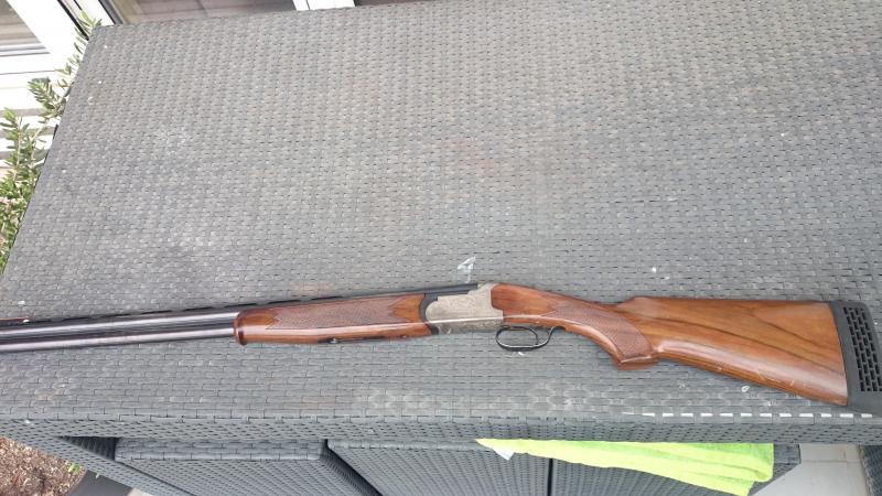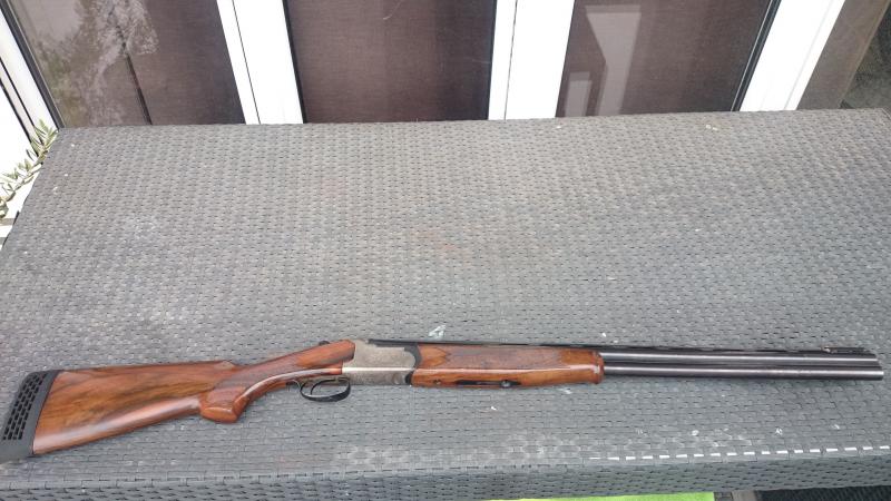 Pues eso que vendo esta escopeta superpuesta monogatillo y expulsora marca Lamber con selector de tiro.