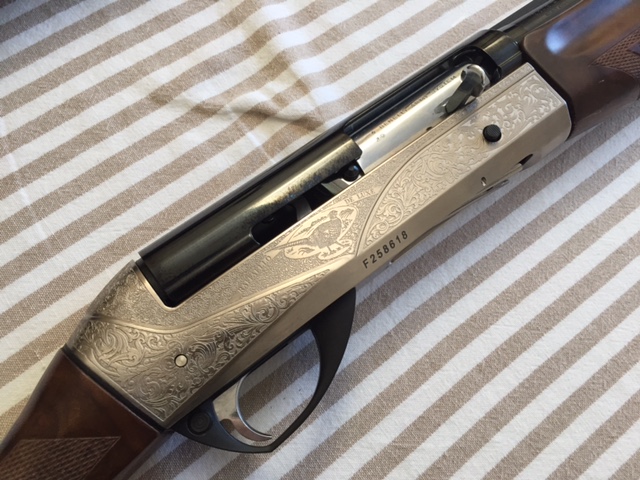 Benelli Raffaello Deluxe con cañón Power Bore. Semiautomática perfecta para los cazadores que deseen destacarse y que aprecien la atención a los detalles. Bellos grabados y madera de nogal de calidad superior. Incluye estuche, funda y munición. Es ligera y tiene poco retroceso al mismo tiempo que tiene fuerza y eficiencia.