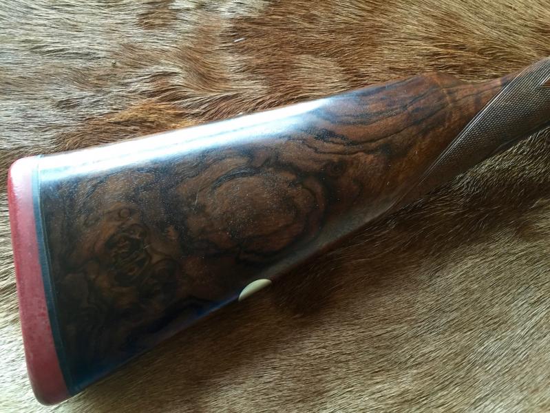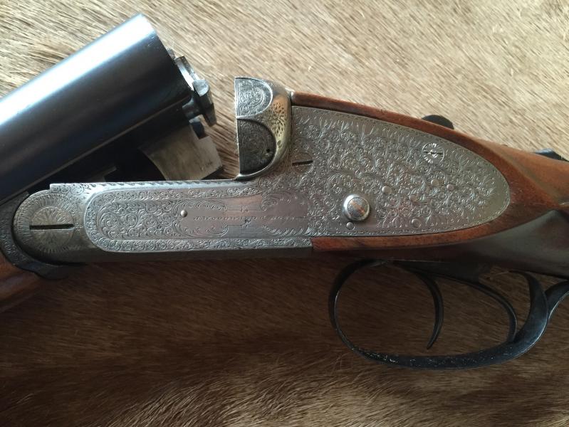 Fabricada circa 1898-1899 fue la número 2 de una pareja de escopetas de tiro, que a lo largo de su longeva vida se separaron... no he sido capaz de encontrar a su gemela. Esto, como sabéis los amantes de las paralelas finas, le quita mucho valor al precio estratosférico que podría valer la pareja (lo digo para ahorrarnos la posible negociación). La escopeta, originariamente recamarada a 65mm -como todas las armas de la época-, ha sido modificada y puede disparar cartuchería moderna de 70mm.