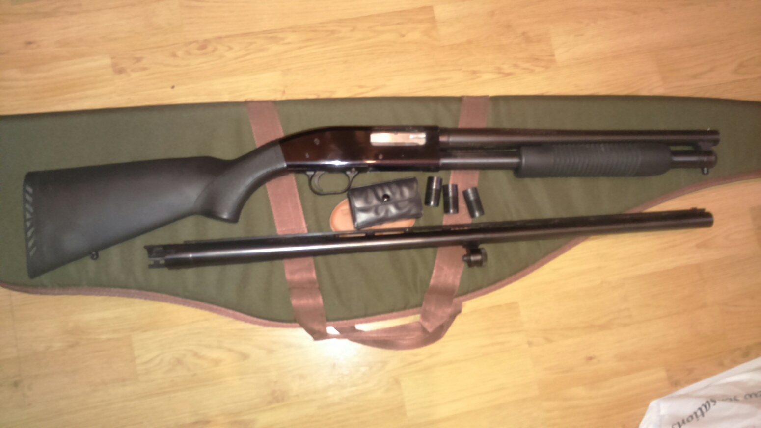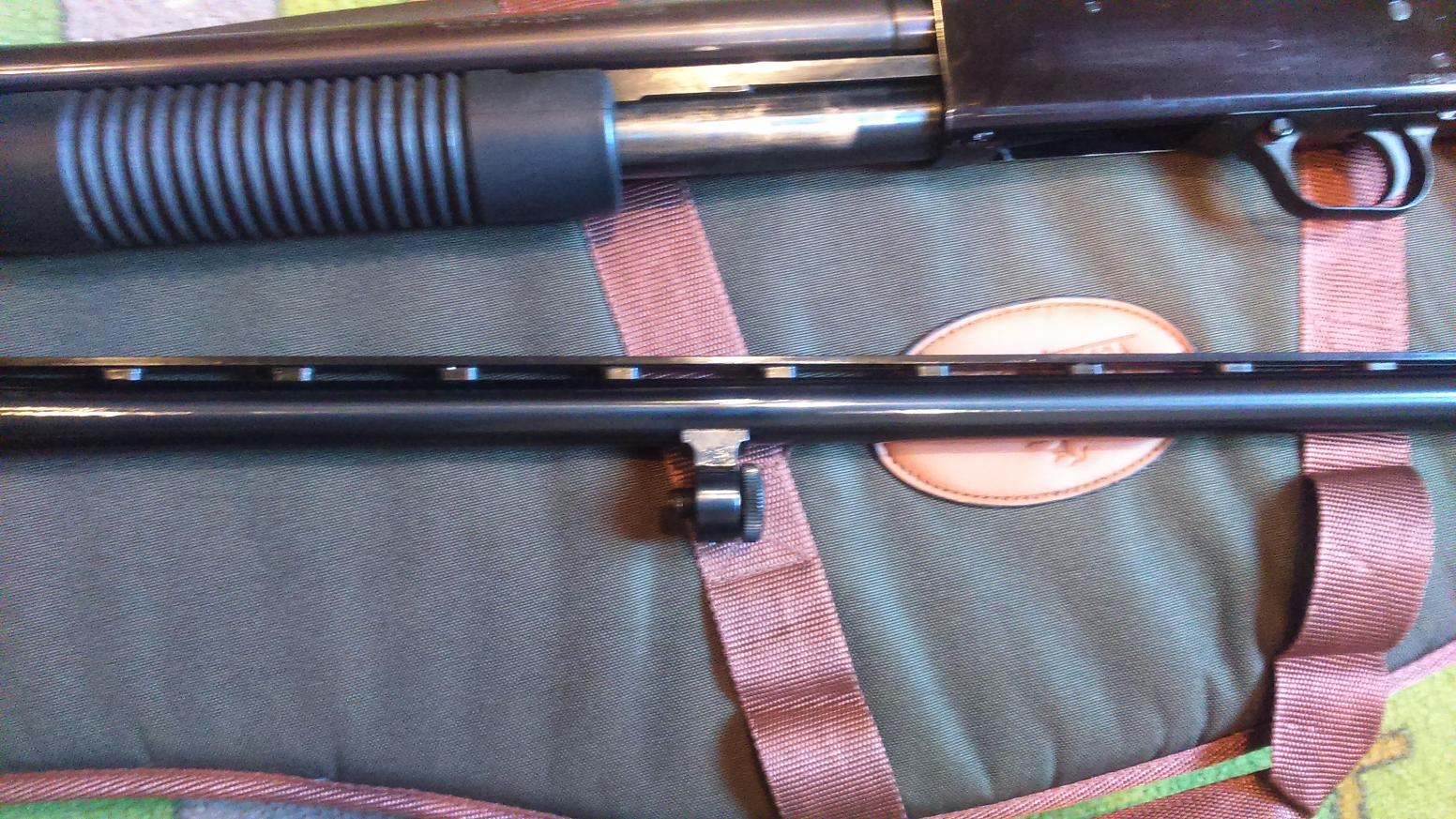 Mossberg-Maverick con dos caňones, uno corto cilíndrico y uno de caza con 4 chockes y solista ventilada.