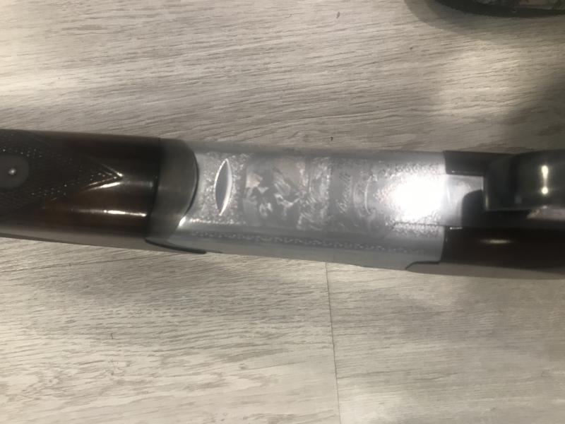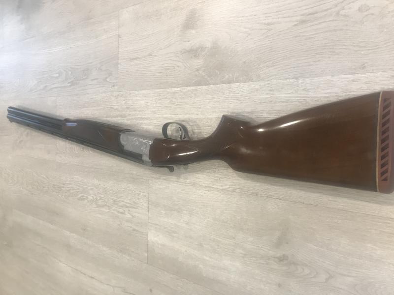 Se trata de una superpuesta marca benelli modelo urbino, con grabados de becadas y unas maderas de más alta gama, la escopeta tiene un gatillo y selector de tiro, así como expulsora, cañón ventilado y también polichoques intercamviables.