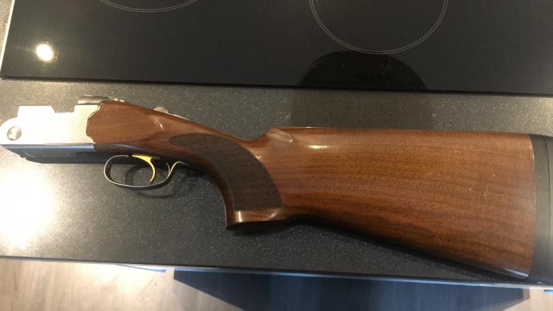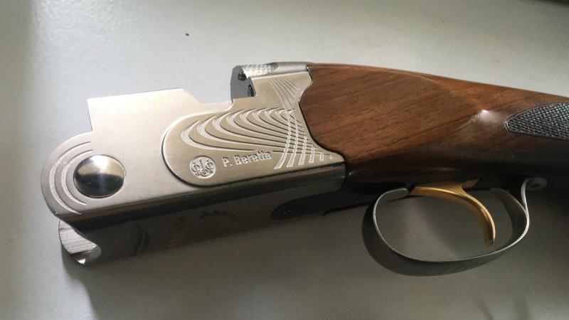 Escopeta Beretta 686 E Trap de 76cm de cañon y 2*1* estrellas fijas, en muy buen estado de coservación, muy ajustada, bien de maderas y de pavonado, punto de mira LPA rojo y cantonera microcre Beretta de 18mm de ancho. Precio 980€
