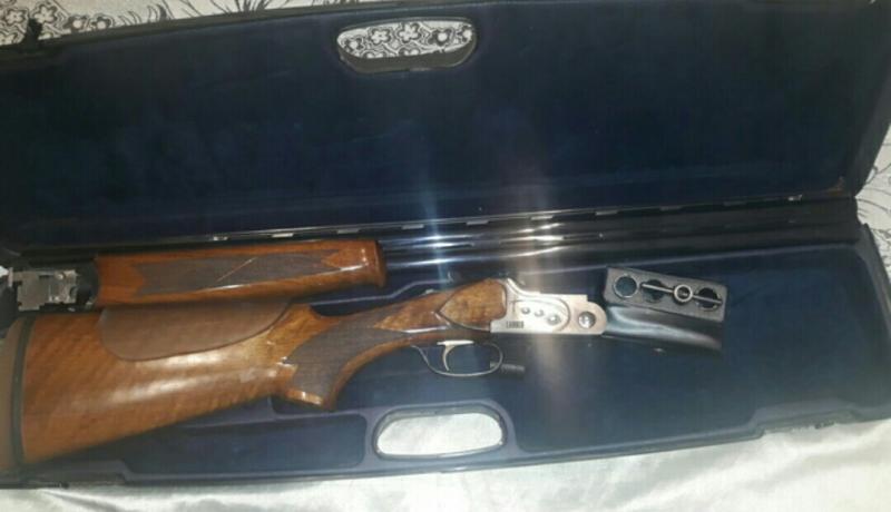 lanber 2097 sporting , 76 de cañon , doble punto de mira , banda ancha , 5 chokes 1,2,3,4 y cilindrico , carrillera de silicona beretta , maletin negrini , buen estado.