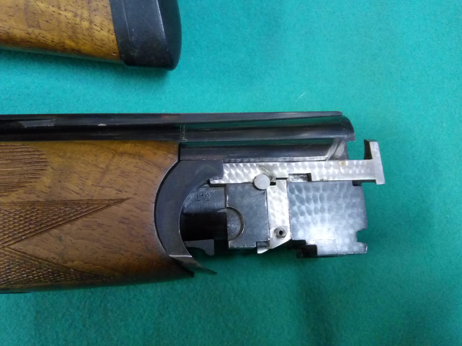 Superpuesta marca Lanber, calibre 12, expulsora, monogatillo, con polichoques.