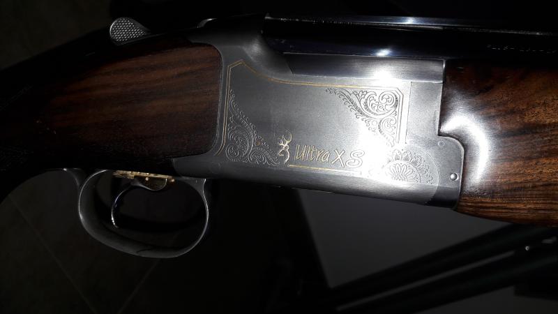 Vendo escopeta superpuesta Browning Ultra XS. Esta como nueva. Se ha usado muy poco. Grabados dorados y tres tipos de gatillo, tambien dorados. Cañon de 70 cm, con 5 polichoques. Maletín de aluminio original de la marca.