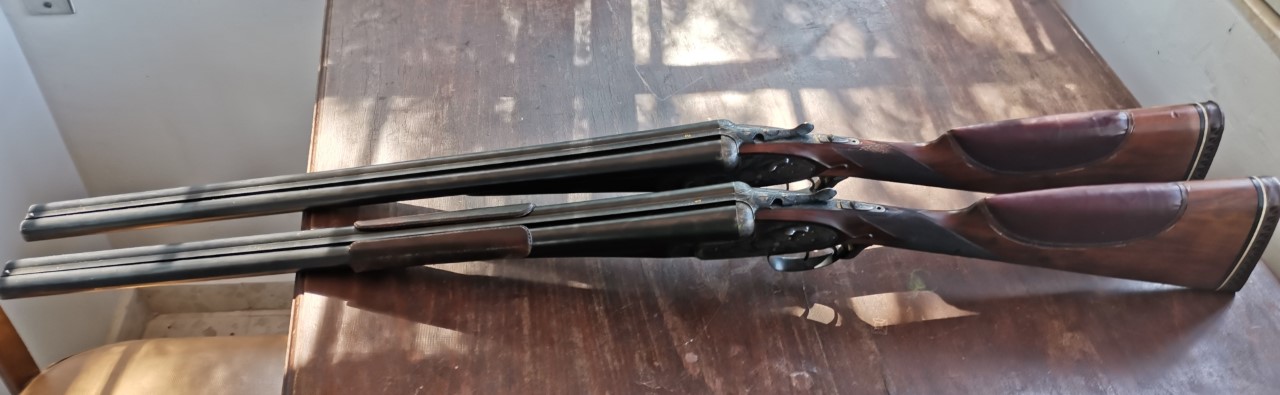 Son de mayo de 1976. Se encuentran ambas en gran estado, Jaspe original intacto, cañones como espejos. Cada una con su correspondientes fundas de piel hechas a mano. Son AYA nº 1: obviamente expulsoras,salida de gases, gatillo articulado, etc