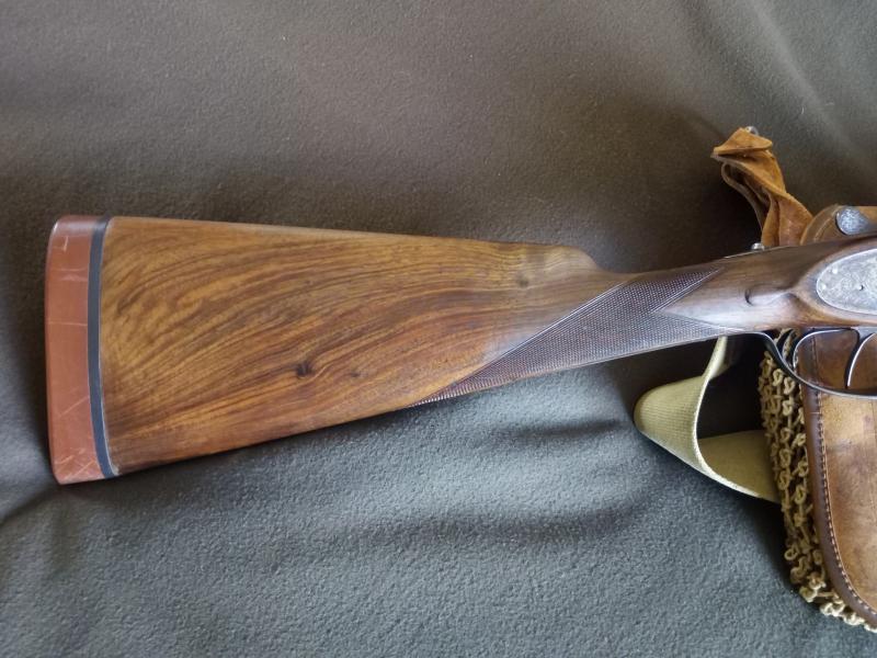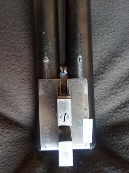 Cañones demiblok de acero boehler antinit en impecable estado, con choques de 4 y 3 estrellas. Triple cierre. Pletinas largas con finos grabados tipo purdey. Doble gatillo, con el primero articulado. Culata de madera de nogal, de tipo inglesa, con lágrima.