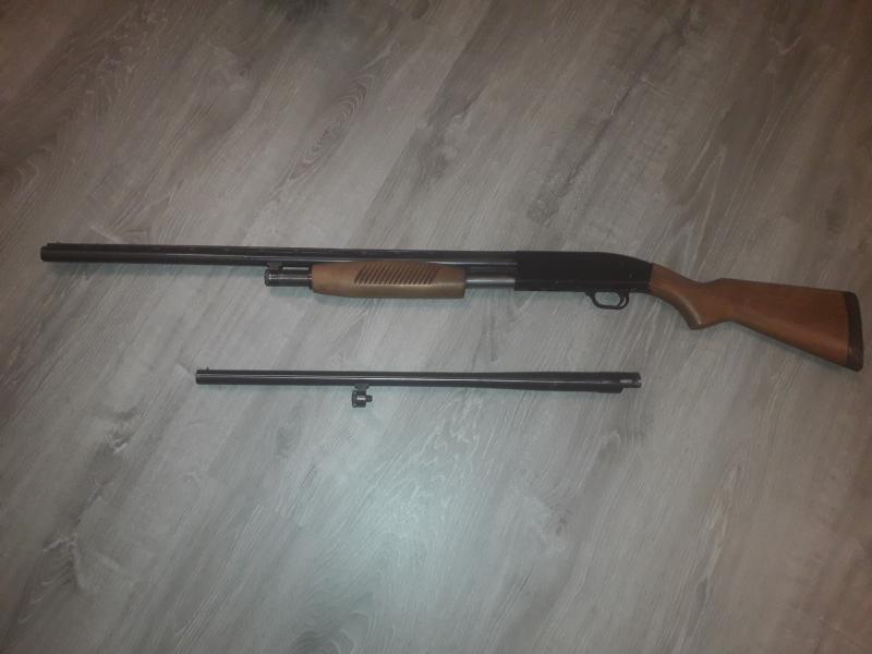 Vendo escopeta de corredera marca maverick con dos cañones uno liso de 60cm y el otro de 70cm con choques intercambiables aunque solo tengo el full
