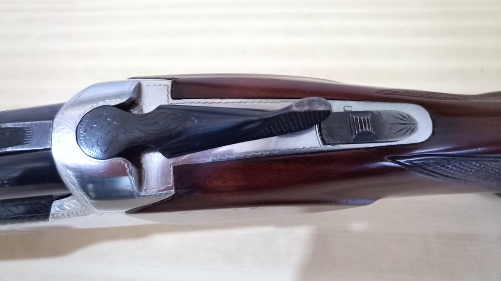 Es de monogatillo con selector de tiro en su parte superior.