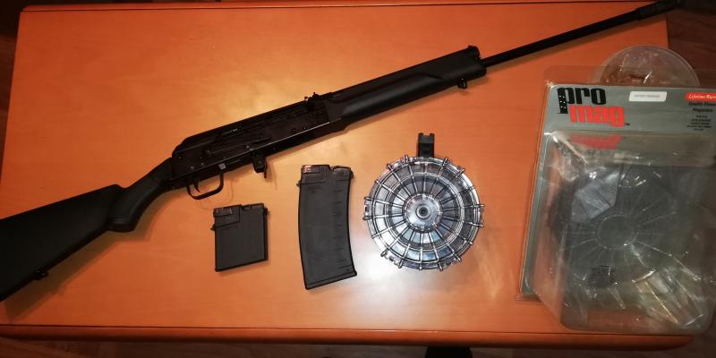 Pongo a la venta Saiga cal. 410 con cargador limitado a tres cartuchos añadiendo cargador de 10 y otro de 30 cartuchos pro mag para coleccionismo, el arma tiene bocacha apaga llamas y se incuye paradox para el uso de bala junto con carril lateral y superior picantini para uso de accesorios. Longitud cañón 57cm y el total del arma 1,57cm.
