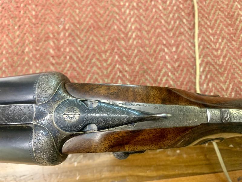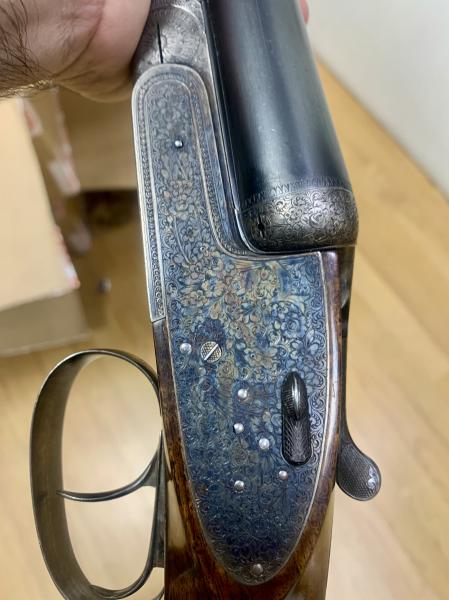 Vendo Arrieta 585 Liria de 1943. De la época del fundador, Avelino Arrieta. Cañones de acero Siemens de 74,5 cm con un peso de 1464 gramos y con chokes de 8 décimas en ambos. Culata marmolada de nogal de grado 5 con cantonera maciza naranja con una longitud de 36 cm. Llaves enjoyadas y pletinas con jaspe perfecto y decoración vegetal. Gatillo articulado, válvulas de escape de gases y expulsora. Una joya. Se puede ver y probar en Madrid. Precio 1.500 €. Rebaja a 1.300 € Envío incluido
