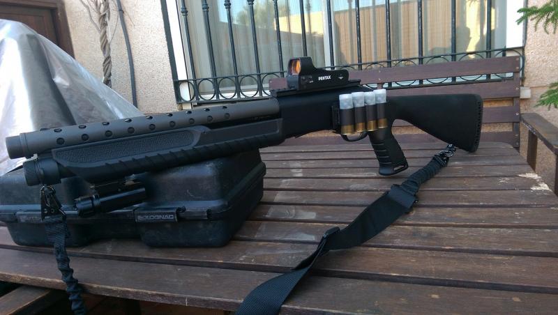 Guiada con la A, adquirida para defensa con solo 2 cajas de postas dispardas esta nueva, monta carril picatiny en cajon de mecanismos y en guardamano (instalacion hecha por armero) culata tactica fabarm, pistolet para dejarla pequeña, visor holografico pentax, correa tactica, linterna de led, portacartuchos. Se entrega maletin rigido nuevo a estrenar que lo comprare si se hace el envio. Precio envio incluido y guia de circulación. 800 Euros. No negociable. Si se recoge en mano son 750 sin maletin.