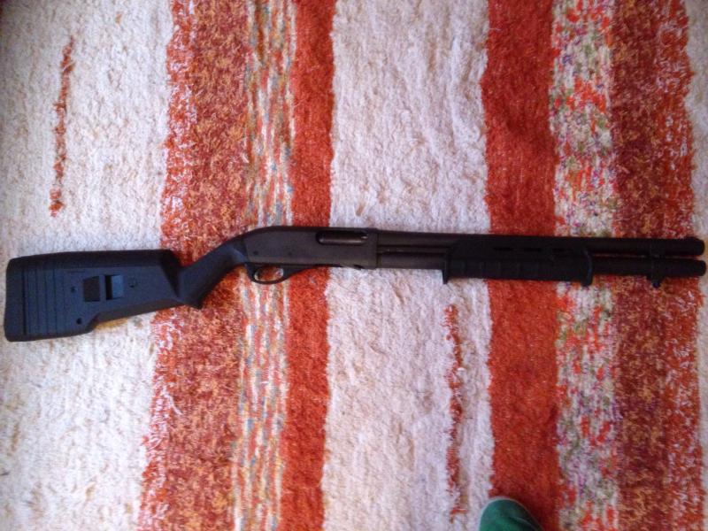 Hola, vendo mi remington 870, tengo montada culata y guardamanos magpull, tambien los originales y una tipo m4, la escopeta funciona perfectamente pero tengo q hacer sitio para mas caprichos, el precio seria 450€ mas portes. Mando mas fotos por whatsap a interesados es que son muy grandes y no me deja subir mas.