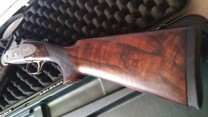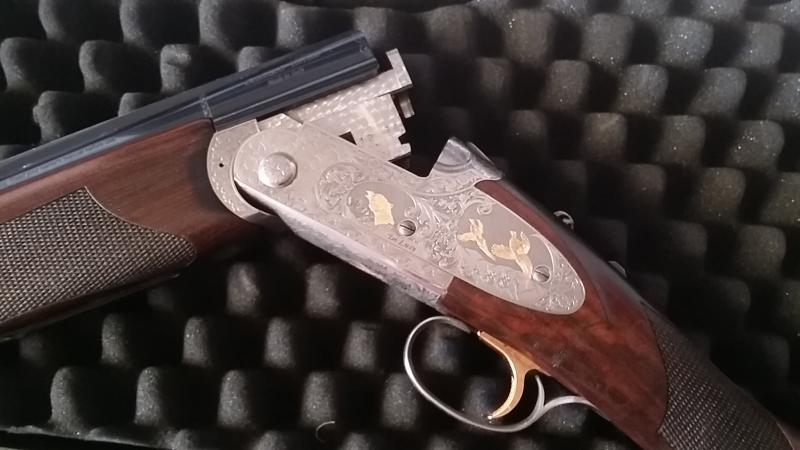Escopeta superpuesta bettinsoli tarcisio de luxe sporting cal. 12. 5 polichokes, Maderas muy bonitas veteadas, cañones ventilados, bonitos grabados con escenas de caza. Incluye maletin original