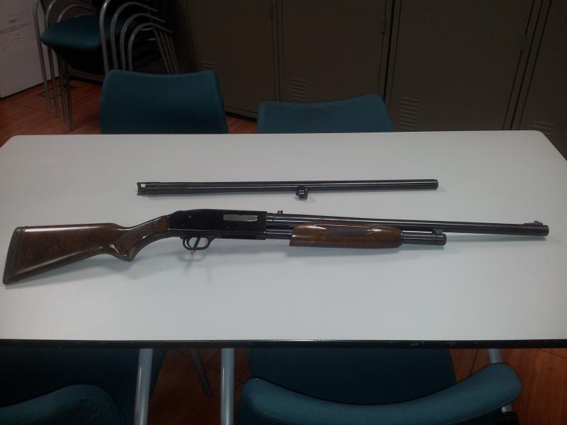 Se vende escopeta corredera mossberg 500 con cañon estriado de bala y cañon de caza con polichoques.
