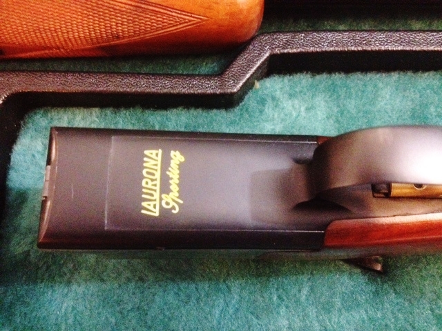Escopeta laurona Sporting superpuesta con cuatro polichoques, x, xx, xxx y xxxx, 71 cm de cañon, funda rigida original.