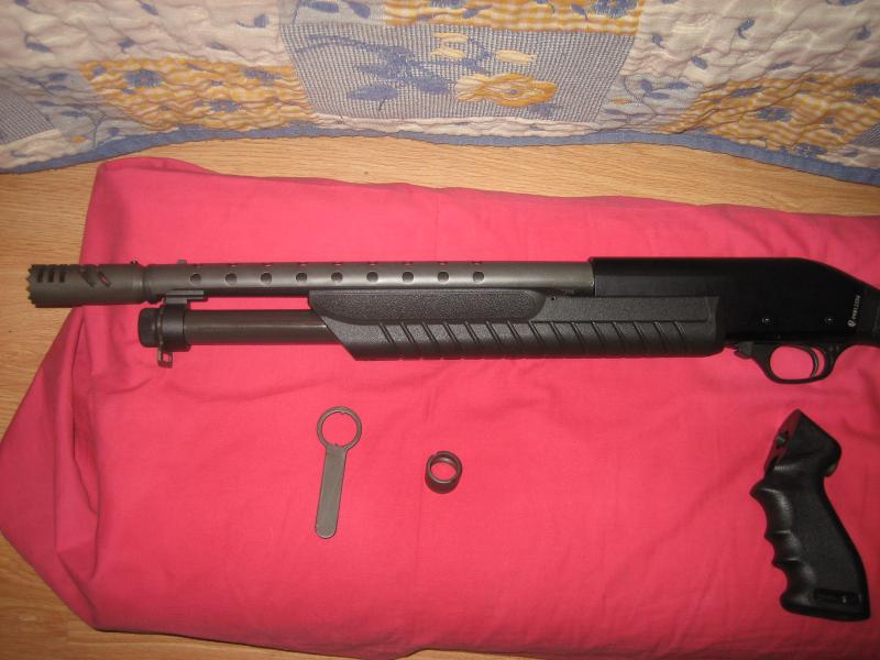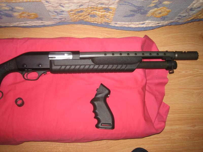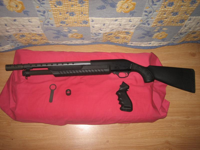 Hola. Vendo esta escopeta de corredera tiene 35cm. de cañón, calibre 12 magnum,. Probada a 1400Kg.con culata pistolet original mas una normal de composite con cantonera de caucho, y ademas una bocacha rompepuertas y el tapón cubre roscas . Tiene unos 500 disparos realizados. Solo tiene las marcas características de accionar la corredera, que con los primeros 10 disparos ya se marcan. Carga 5+1 del 12/70. Está en Asturias , y son 550€ portes incluidos a la península.