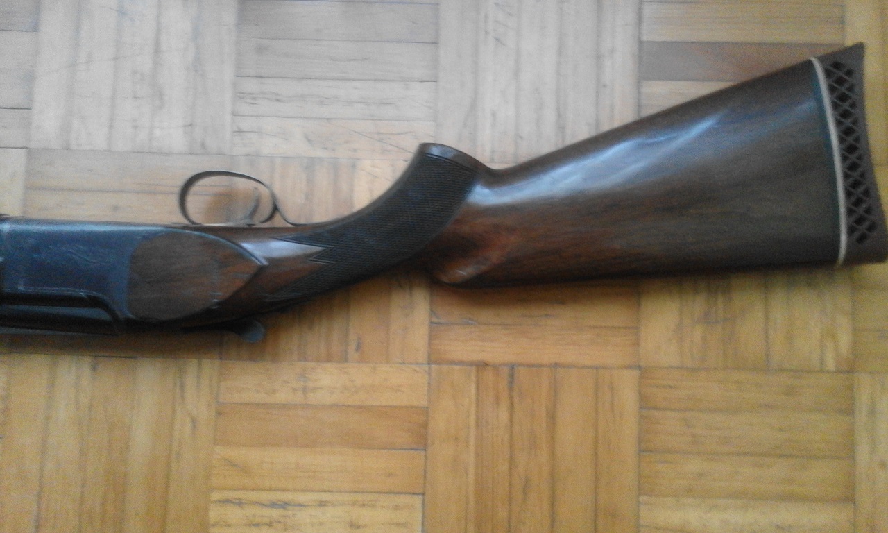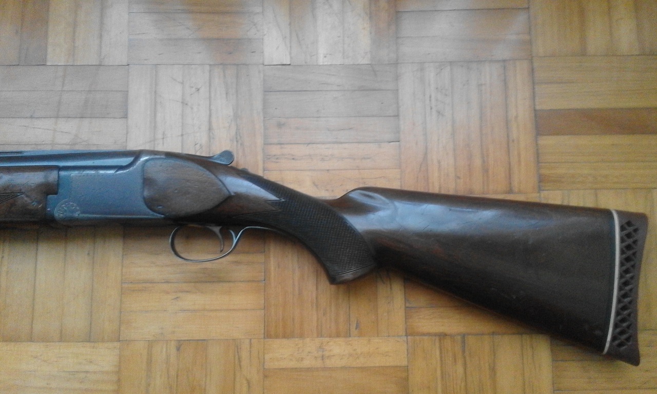 Escopeta Miroku superpuesta especial caza, calibre 12/70, monogatillo, expulsora, selector de tiro, chokes x- y x (en version española equivale a *** y *), solista ventilada de 8 m/m, tiene el pavon algo gastado por la parte delantera de los cañones y algún toque en la madera por el uso, esta bien de ajustes y funcionamiento, cañones de 71 ctms. con animas a espejo.