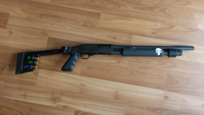 Escopeta de corredera con cañón de 18 pulgadas cilíndrico y capacidad en tubo almacén de 5 cartuchos. Réplica de Remington 870. Escopeta comprada a otro forero en estado nueva, disparos con cargas livianas realizados 50. En perfecto estado estético y funcional. Culata fija y abatible, punto de mira en fibra y accesorio con riel para montaje de linternas, etc en tubo almacén, el arma está en Madrid, precio 270 euros.