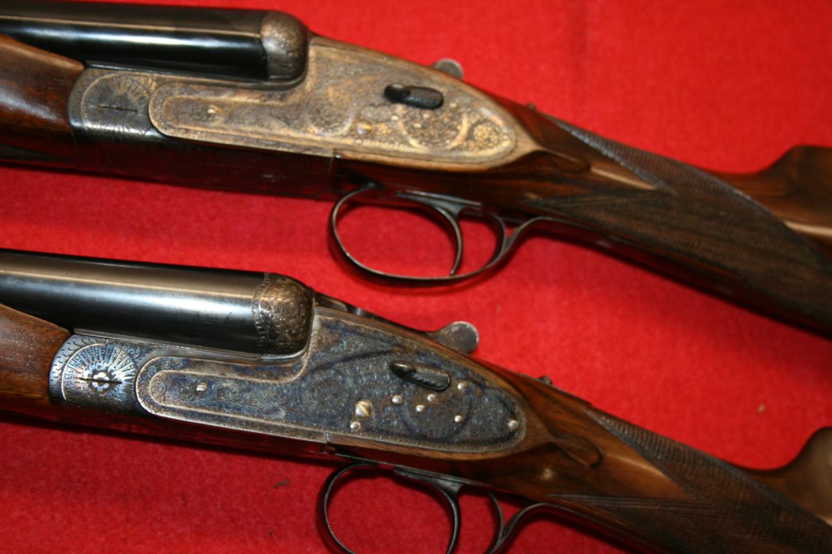 Vendo pareja de Pedro Arrizabalaga especial Monogatillo grabados Purdey con 4 juegos de cañones con apertura automatica 2 cañones para ojeo y dos para caza estan nuevas mando fotos a interesados precio 8.000 €