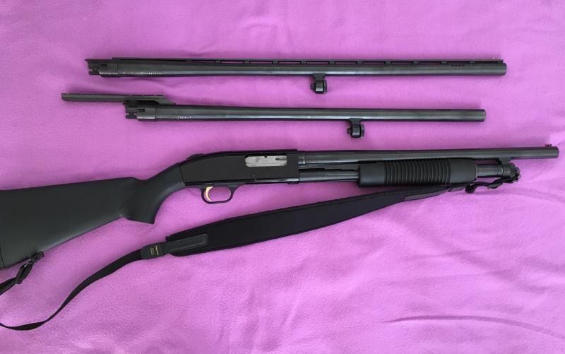 Mossberg 500A, culata y guardamanos cambiados por sintéticos, tres tubos