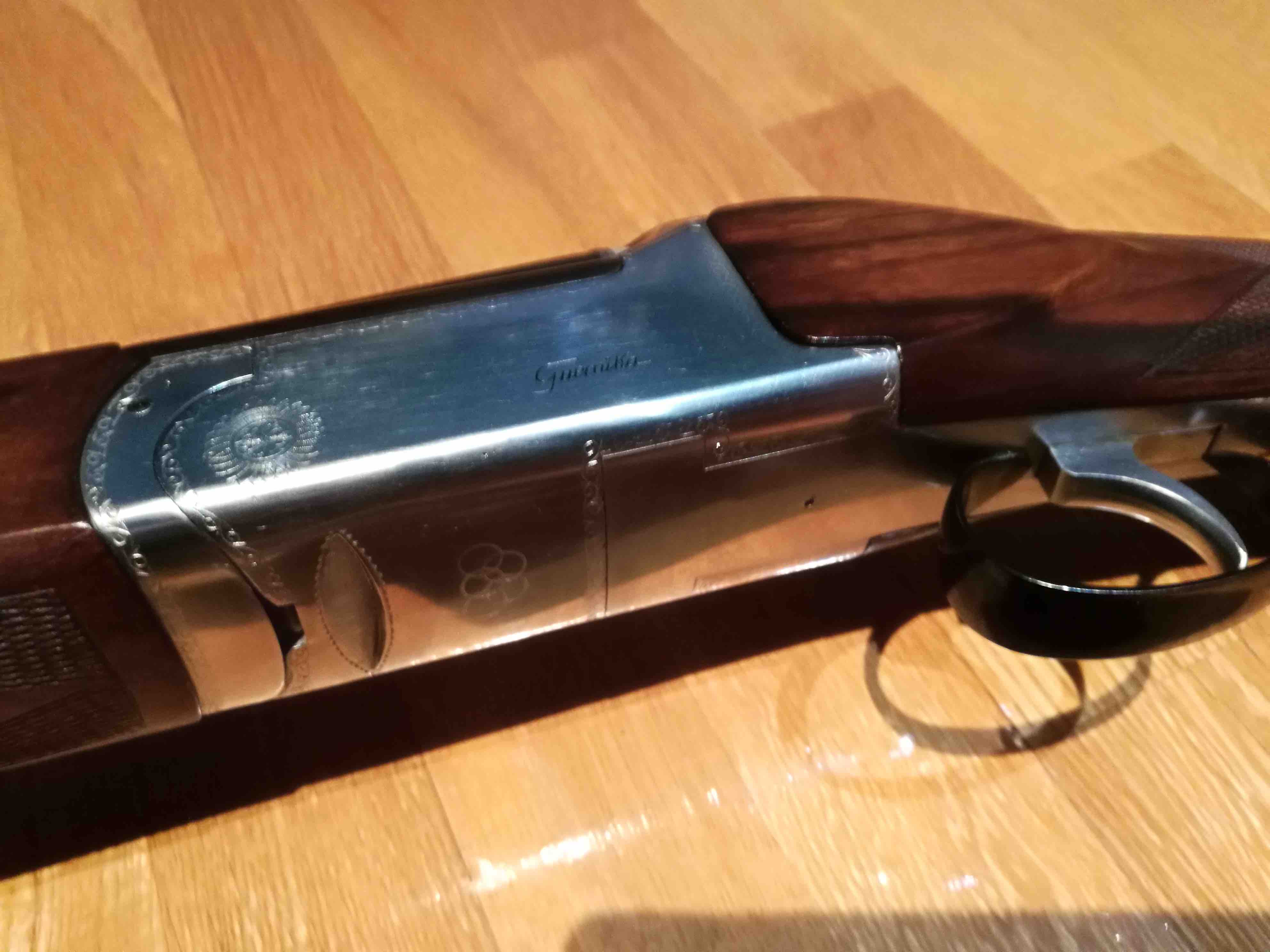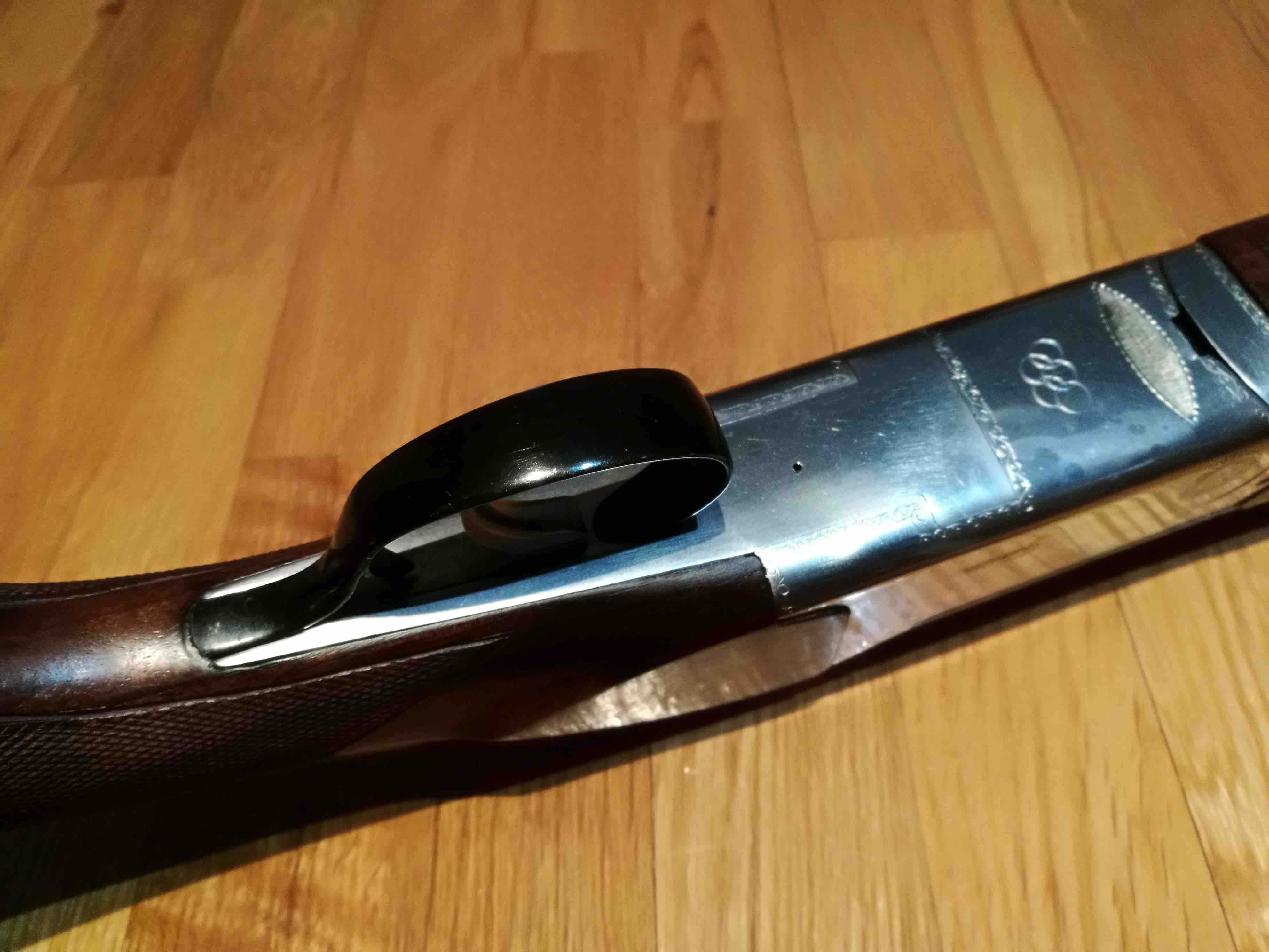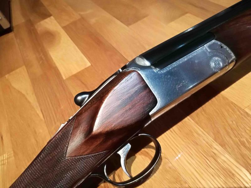 La escopeta está en un estado excepcional con un cierre tipo Boss (como las Perazzi) que todavía cuesta operar de lo poco usada que está la escopeta (conserva incluso la pegatina con el logo Aramberri en el pistolete). Las maderas están terminadas al aceite y el pavonado es el original, totalmente impoluto.