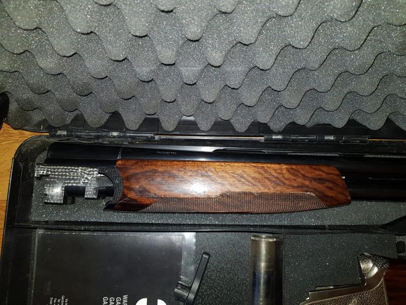 Es una Superpuesta con Cañón de 69 cm, pesa 2, 6 kg aproximadamente. Algún pequeño rasguño en la madera pero se ve bastante bien, (la parte baja de la culata esta reparada), cuando la cambie a un compañero ya estaba así, y no ha dado ningún problema, a parte tiene la cantonera cambiada por una Kick-eez sorbothane (50 euros).