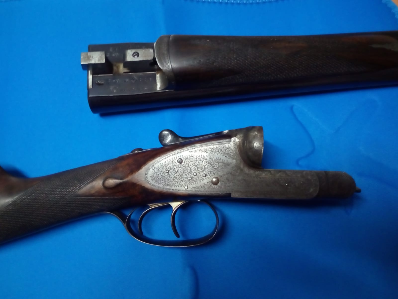 Hola tu escopeta es inglesa fabricada sobre el año 1900.