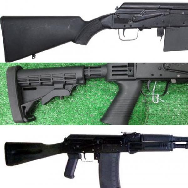 Arriba la versión «civil», en medio una versión «civil» con el añadido de la culata, que sobresale (es igual que la del segundo anuncio que pasaste) y en tercer lugar una versión tipo AK.