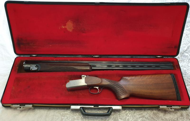 Pongo a la venta esta escopeta superpuesta italiana Maroccini para tiro al plato. Dispone de cañones de 74cm, con choques fijos de 1 y 2 estrellas y cámara de 70.