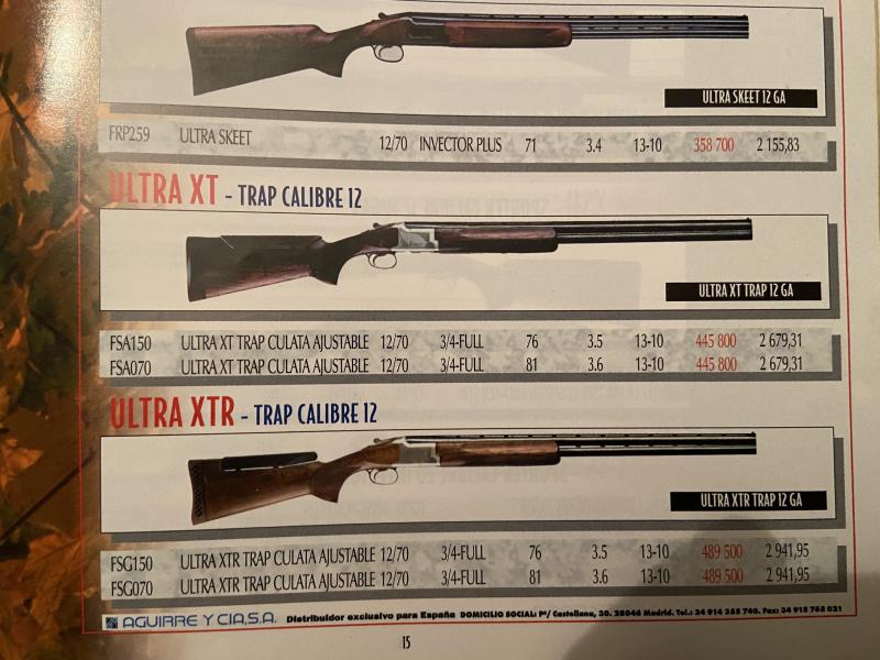 Foto del catálogo de época de Browning; como verás, la XTR no llevaba polichokes y la XT no llevaba lomo de goma. Y el modelo prestige no aparece... es una XTR, la R en el grabado fué a la vez que los polichokes, a posteriori. La única diferencia en esa época es la calidad de la madera y el tipo de lomo.