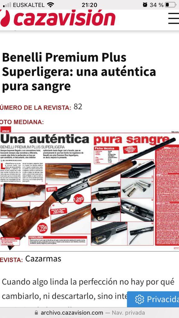 Vendo benelli premium plus superligera, última serie modelo plus con 4 choques interiores largos (brilley). Maletin original. En perfecto estado (maderas y pavonado ni una sola marca) salvo pequeño desgaste en cantonera de no usar y estar en el armero. Con segundo cañón Slug liso para bala de 56 cm. Calidad muy superior a las actuales belmonte. Precio del conjunto que me costo 1350 y lo vendo por 950 o 800 solo con el cañón de 71. Preferible en mano, envío a cargo del comprador. Tiene todavía la garantía ya que se compro en 2018, entrego libro y garantía sellada.