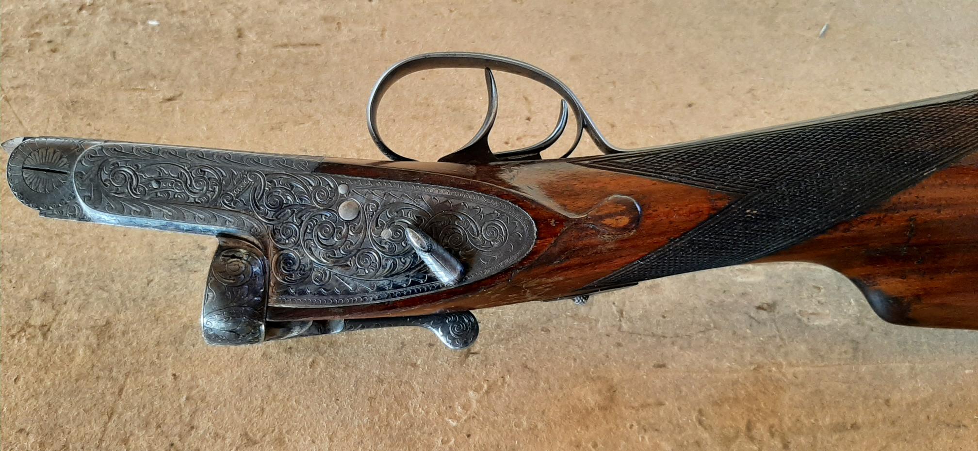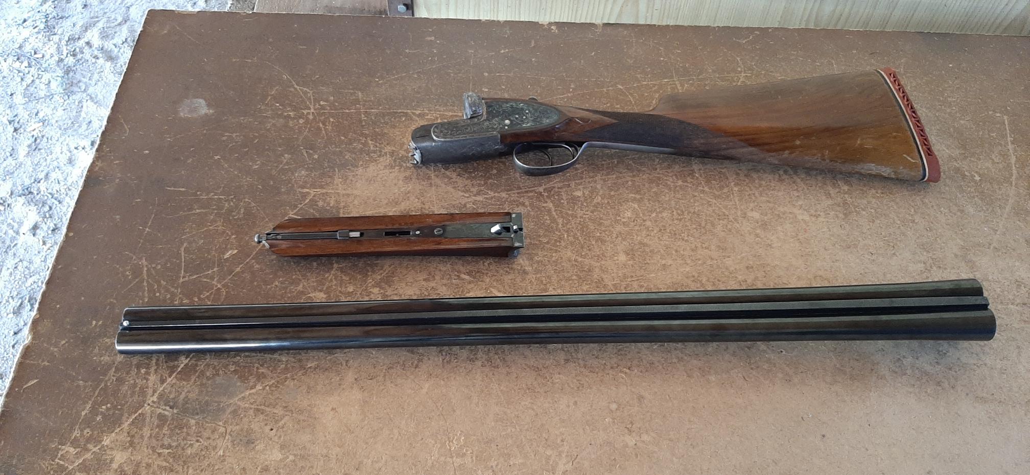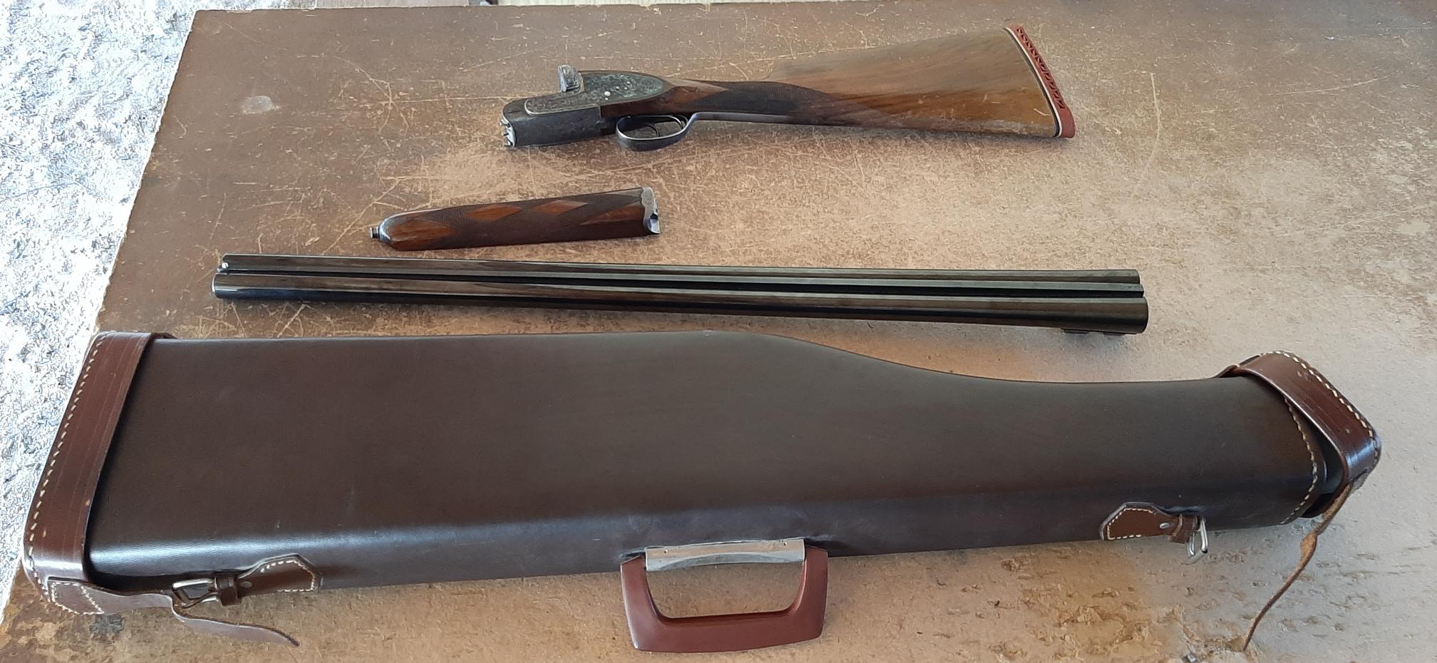 Un amigo vende esta paralela del calibre 12/70 con cañones de 70 cms, choque 3* en derecho y 1* en izquierdo. Culata inglesa, expulsora, salida de gases, muy bien de cañones por dentro y fuera, bonitos y clásicos grabados. Por los marcajes está probada a 900kgs y es del año 1970 ( O1 ). Incluye funda de cuero para llevar separados cañones y culata. Tiene algunas marcas en madera debido al típico roce con chaleco y cartuchos, fácil de solucionar. Se rebaja a 350 :papa: euros.