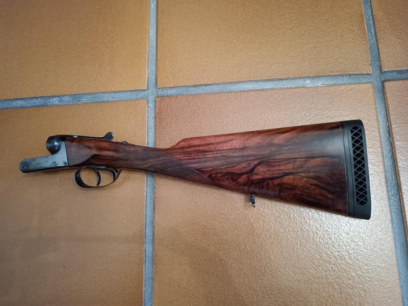 Escopeta paralela Brancquaert cal. 16 / 70, o salió así de fábrica o se lo hizo el primer propietario, yo soy el segundo, de 1940 en estado completamente nueva, no se ha usado, ni por él ni por mi.