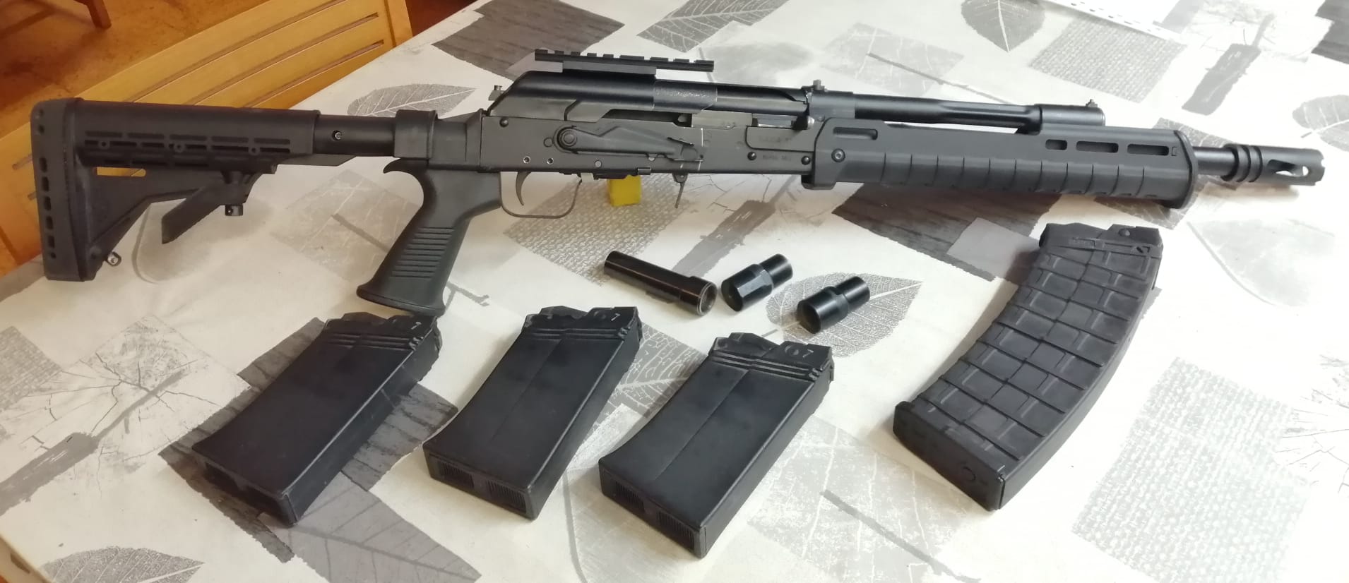-Cañón recortado (con certificado BOPE) y roscado (rosca igual a la original, sirven los accesorios estándar de saiga).