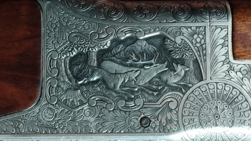 Están grabadas a buril manualmente, por lo que no existen dos idénticas, cada escopeta llevaba alrededor de 15 días de trabajo de un artesano grabador.