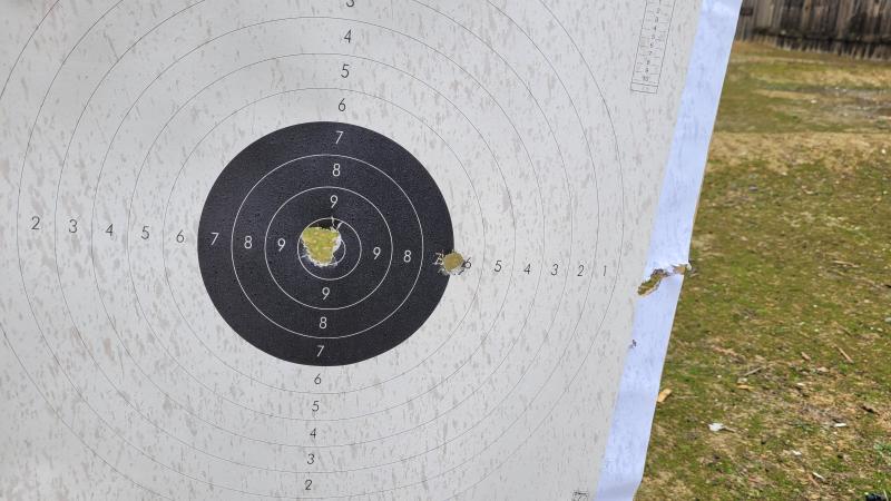 Aquí otra prueba, tbn a 25m pero sin apoyo con cartucho bala Solognac slug