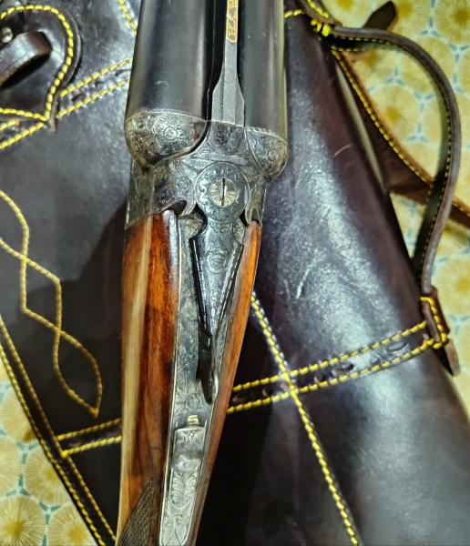 dos gatillos, cañón de 63,5 centímetros con solista Churchill, cal.12, expulsora *** &. * estrellas, pletinas muy grabadas con contra tornillos , óvalo para iniciales sin grabar, maderas sin cortar acabado en picado, peso 2800 kg. Escopeta destinada cómo segunda arma , tengo otro modelo igual, escaso uso, más kms que tiros efectuados. Funda de calidad en cuero hecha a medida.