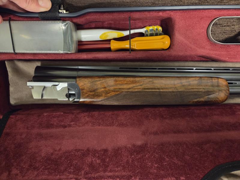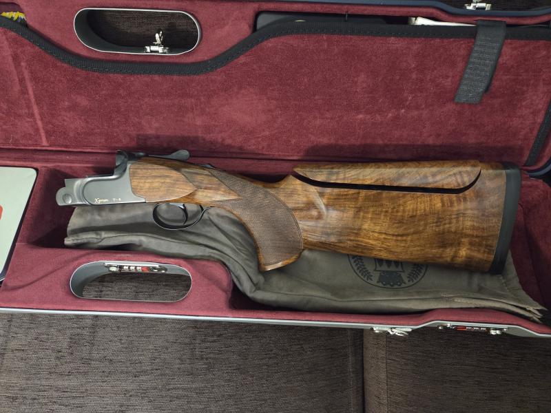 Kemen T4 fabricada y estrenada en 2021, con documentación. 4 cajones disparados. 5 chokes Briley con rosca en ambos cañones (que miden 74 cm, recámaras de 18,4 y 18,5), culata de nogal Gr 3 con lomo regulable Kemen y longitud 36,5 cm. Batería extraíble. Estuche de piezas de recambio, fundas y maletín compacto. 7750€. La Rioja. No cambios.