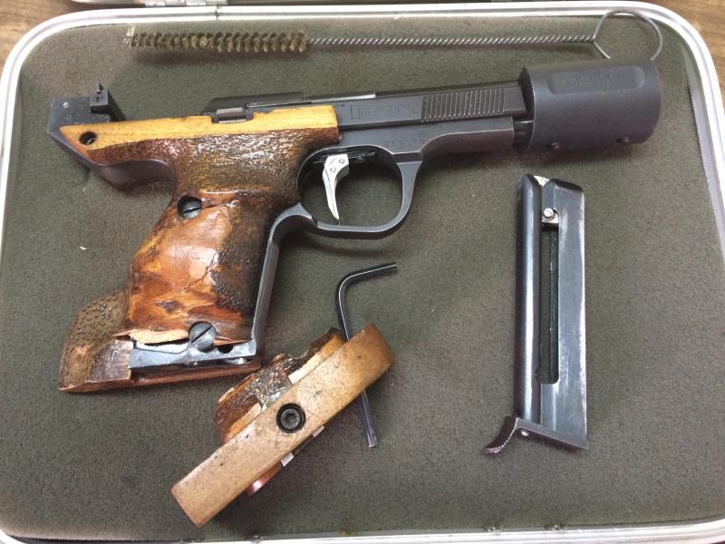 Se vende pistola de concurso marca UNIQUE en calibre 22 LR. Como se puede apreciar en las fotos tiene la teja de la cacha rota, por lo demas está en perfecto estado de funcionamiento. Se vende por dejar el tiro. Precio 150 € portes por cuenta del comprador. El arma está en Sevilla. Si se necesita más información se puede llamar al teléfono 661 986 246 (Enrique).