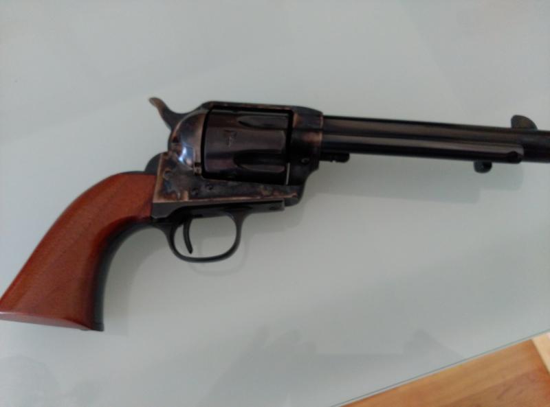 Por no usar y por no ser lo mío las armas cortas, vendo mi Uberti Cattleman en 45 long colt, con cañón de 5,5 pulgadas, comprado hace un año, absolutamente como nuevo, PERFECTO de funcionamiento y estético. Está guiado en AE. Apenas tiene uso, no lo he llevado más de 4 o 5 veces al club de tiro, no tiene ni arañazos ni marcas de uso, está exactamente igual que recién comprado. Es un re-estreno. Lo entregaría con funda a medida hecha por un artesano en piel auténtica, valorada en más de 120€, baqueta de limpieza, puntas, vainas y todos los accesorios que encuentre. Ah, entrego también un monóculo bushnell de 12 aumentos creo que es, que usaba para ver los impactos a 25m y se ve de maravilla, y no fue barato precisamente.