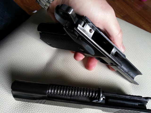Hola, la pistola fue repavonada integramente, se buscaba precisamente un pavon muy suave, y ese efecto. Se le dio un tratamiento en frio y el resultado es el que ves. Tambien se aprovechó para mejorar el pulido de superficies, que con Norinco los acabados son muy mediocres. En privado te puedo pasar fotos dl proceso.