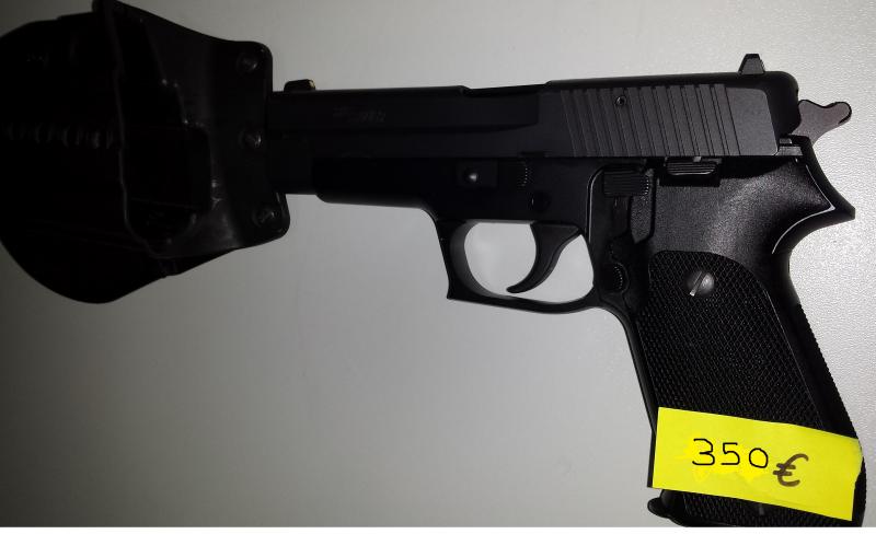 Se vende por hacer hueco en armero, pistola sig sauer p220 del 45 acp con un cargador de 7+1 en doble accion y con puntos de mira luminoscentes, en un estado super conservada y con aproximadamente 150 tiros, guiada anteriormente en A y actualmente en F, se encuentra en armeria depositada por tener y necesitar su hueco en licencia para otra que tengo.