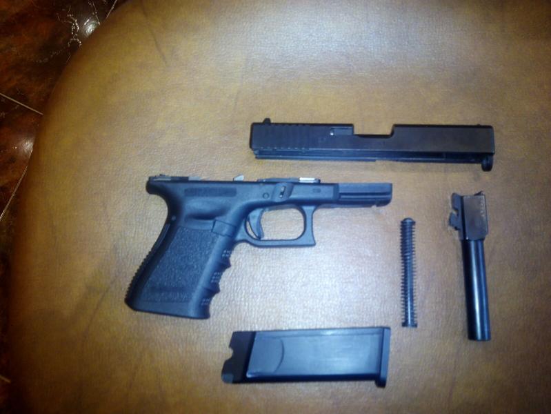 Se trata de una 3 generación, comprada en armería marcos por mi compañero en 2008, a los tres meses de comprarla un accidente le rompió la pierna y la vertebra C7, por lo que ha estado de baja y al final jubilación, la pistola tiene gastados 2 cargadores con el 9mm, puesto que ha estado guardada con el 22 unos 200 disparos sin problemas, el kit es el Ciener.
