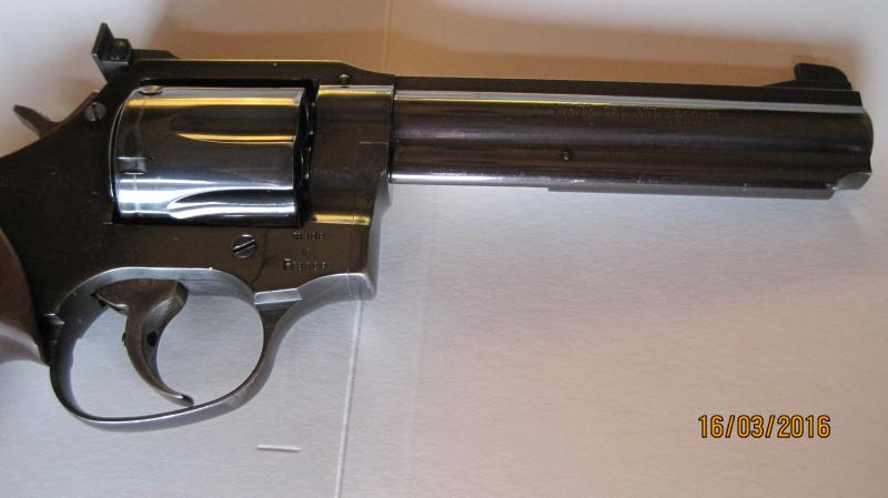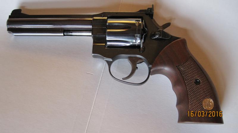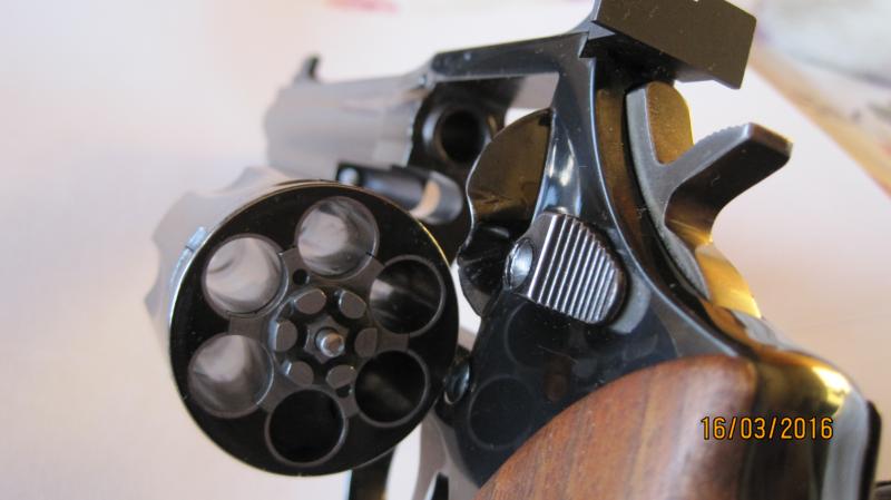 -En buen estado. Con la salvedad de que en una de las recámaras del tambor se agarra la vaina al sacarla una vez disparada, la tengo sellada con un taco de plástico que se puede quitar si se desea. El resto de recámaras están bien, al igual que las demás partes del arma.