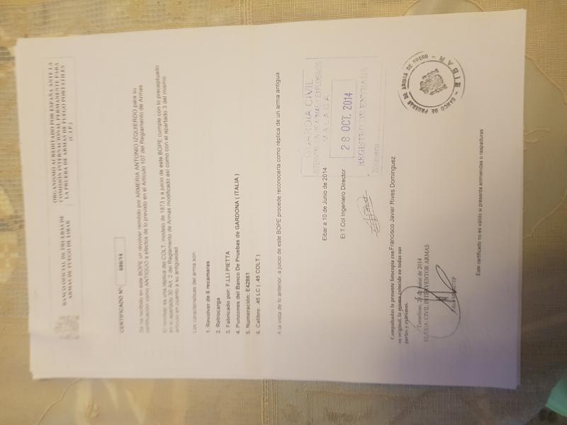 Es una replica del colt 45 lc Pietta1873 cartuchería metálica,la verdad es que no se como esta el mercado pero os aseguro que yo pague mas, no tiene los dos años de primera mano y solo a sido disparado una vez para probarlo esta nuevo, si le interesa a alguien y el precio no es el del mercado se puede negociar naturalmente saludos a todos los compañeros,.
