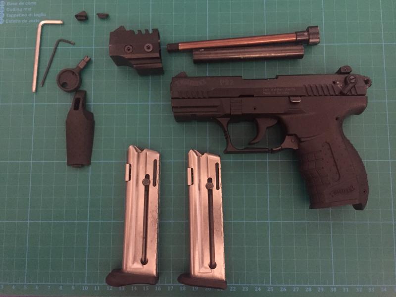 Vendo walther P22, cal. 22 con cañon corto y cañon largo. Dos cargadores, maletin y manual. Ideal para 01