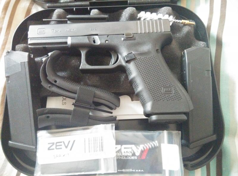 Vendo Glock 17 Gen 4 con 3 cargadores, utensilio de limpieza, juego de cachas, botador Glock, kit Zev muelles de competición y conector Zev Race V4; los cuales aligeran el peso del disparador a 1.360 kg.