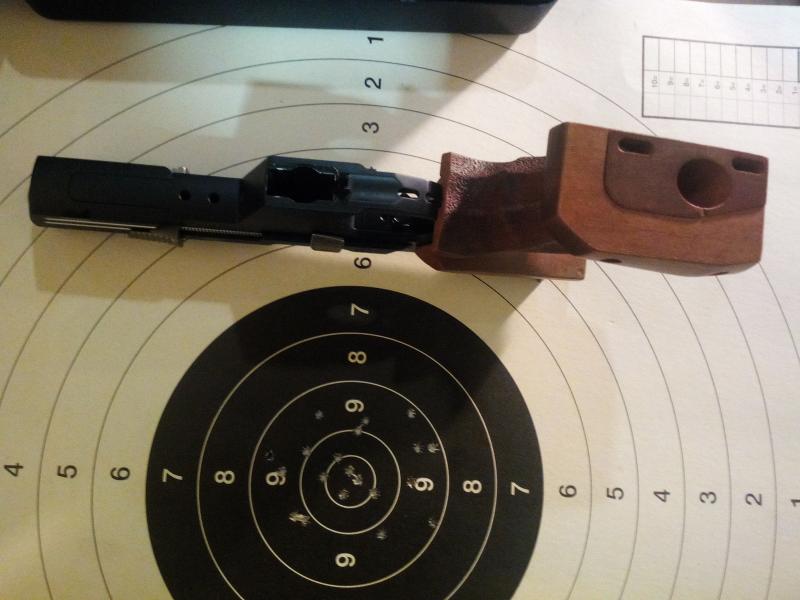 Rectifico: peso vacía 970 gr, con el contrapeso 1030 gr. Como ves es ligerita. Sin embargo, en series de velocidad apenas se mueve. El secreto es que la corredera tiene 2 muelles recuperadores, uno en cada lado de la misma, y ello hace que al disparar, el retroceso sea mínimo y muy estable. Esta es la gran virtud del arma. Sorprendentemente, el contrapeso me es más útil para el tiro de precisión que a 20 y 10 seg.