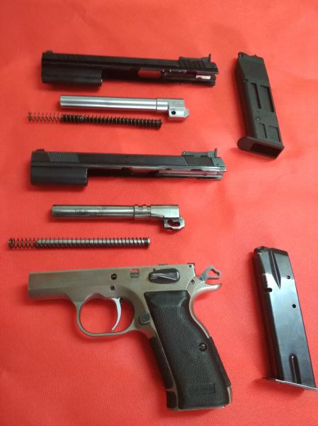 Hola a todos, pongo en venta mi Pistola Tanfoglio Match due-tone del calibre 9mm Parabelum junto con su kit o carro intercambiable de la misma firma Tanfoglio en calibre 22Lr.